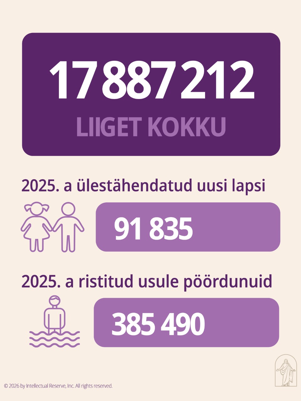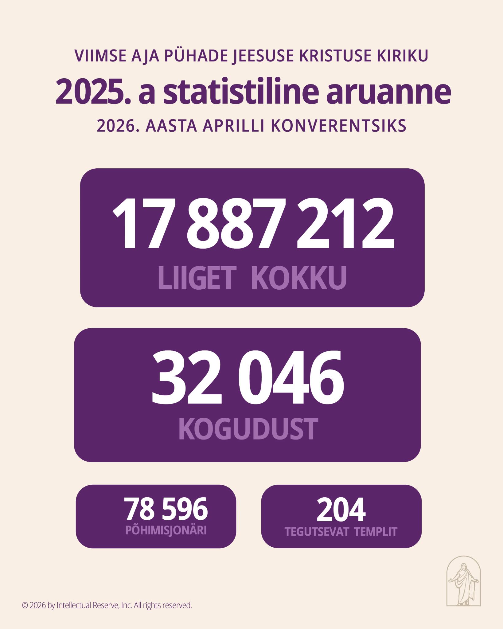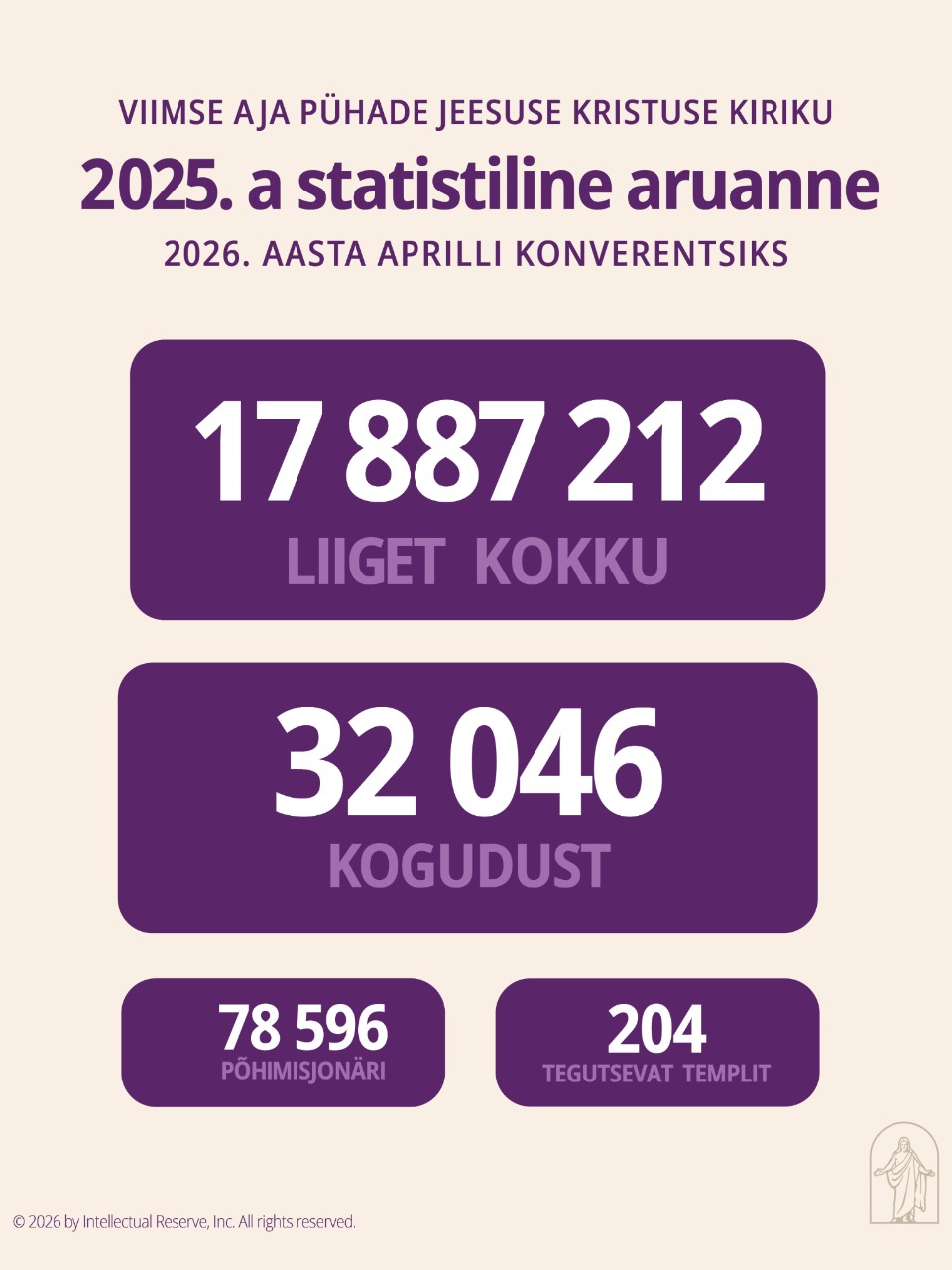 Esimene Presidentkond on avaldanud Viimse Aja Pühade Jeesuse Kristuse Kiriku liikmete informeerimiseks Kiriku kasvu ja hetkeseisu kohta statistilise aruande seisuga 31. detsember 2025. a.