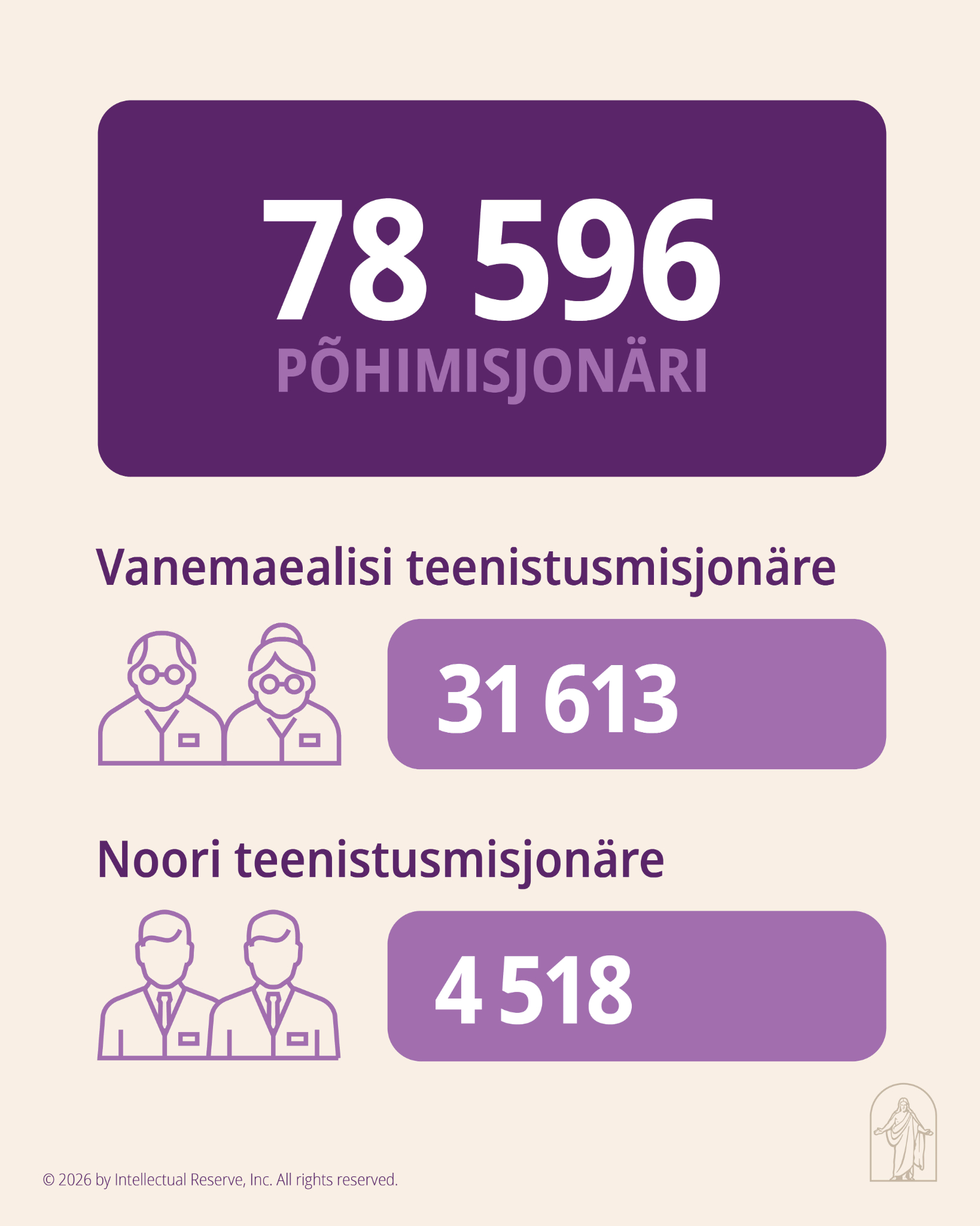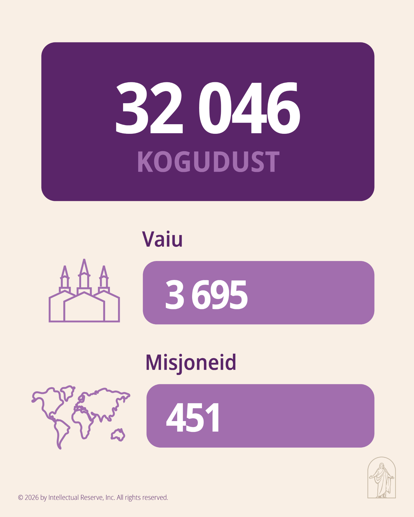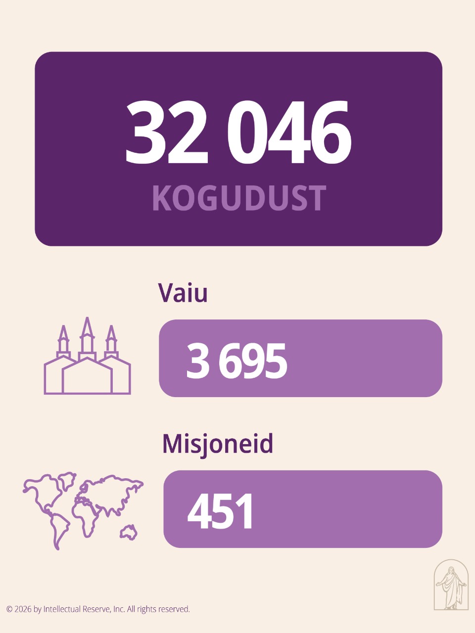 Esimene Presidentkond on avaldanud Viimse Aja Pühade Jeesuse Kristuse Kiriku liikmete informeerimiseks Kiriku kasvu ja hetkeseisu kohta statistilise aruande seisuga 31. detsember 2025. a.